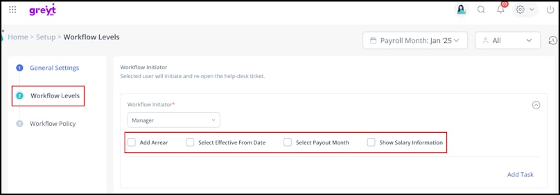 The initiator (employee or manager) can select the following options based on the workflow configuration: