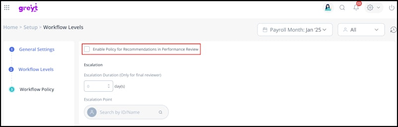 After creating the workflow, you must activate it. Go to the Workflow Levels page, click the Activate button on the policy card, and select the required date for the activation to take effect.